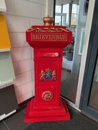 Unieke replica van een Oud Hollandse brievenbus in het rood. Deze brievenbussen stonden begin 1900 in het Nederlandse straatbeeld. Dit model is gemaakt van plaatstaal en gegoten aluminium. De Oud Hollandse brievenbus zuil is 140cm hoog. Oud Hollandse brievenbus kopen? Alleen af te halen We hebben 1 exemplaar in onze showroom staan. Helemaal nieuw! Mocht u interesse hebben dan kunt u dit bij ons op locatie komen bekijken/kopen. (Het model kan alleen worden afgehaald en kan niet worden verzonden) Grote rode brievenbus met historische look De grote rode brievenbus is NIET waterdicht. Om hem te gebruiken zult u dit exemplaar dan ook het beste onder een afdakje kunnen zetten. Ook is het model natuurlijk een perfect pronkstuk voor een museum, tv programma of horeca gelegenheid. Specificaties: - Hoogte: 140cm - Bovenkant: LxB: 50x30cm - Onderkant: LxB:65x37,5cm - Inworp: 23x5cm - Niet waterdicht - Alleen afhalen in onze showroom - Slechts 1exemplaar aanwezig